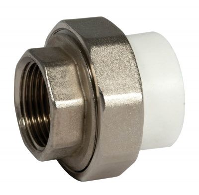 Муфта комбинированная разъемная с внутренней резьбой. Свариваемая поверхность полипропиленового патрубка – внутренняя.